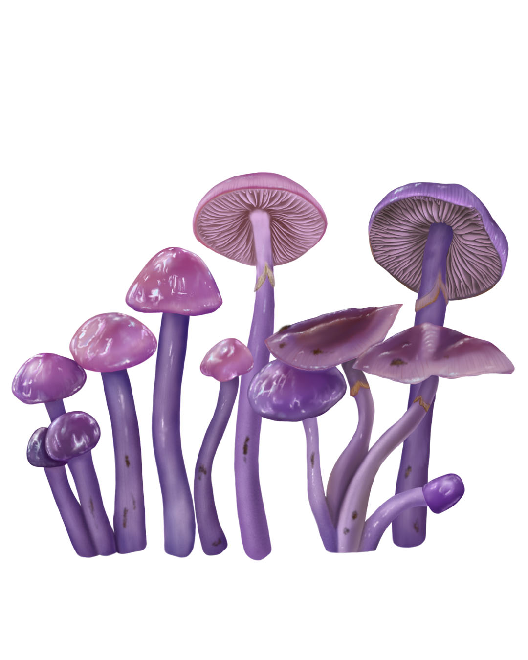 Fungi belong to the kingdom Fungi, and their diversity is known as funga. They play a vital role in ecosystem functioning by enabling decomposition and providing nutrients to a wide range of organisms. New discoveries about fungi are made every day, and their study benefits greatly from illustrations that help make their complexity easier to understand. Watercolor and digital media allow us to portray these extraordinary organisms in rich detail.